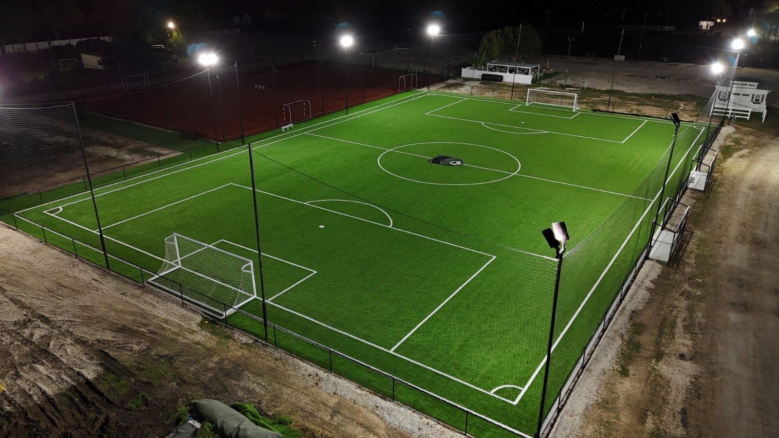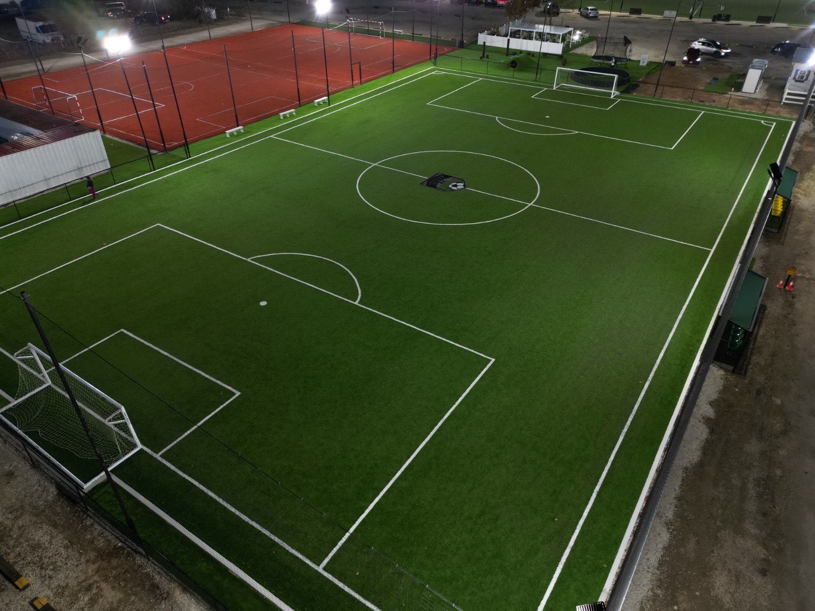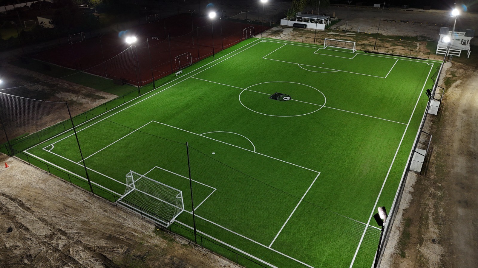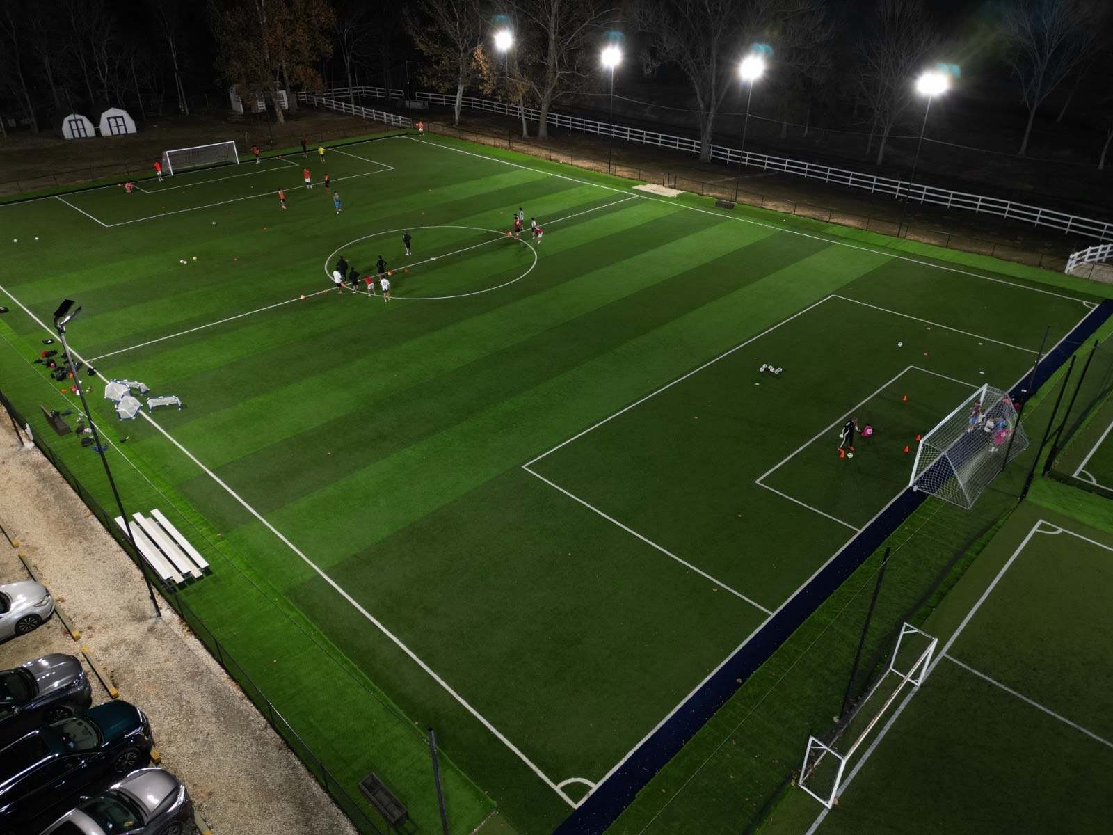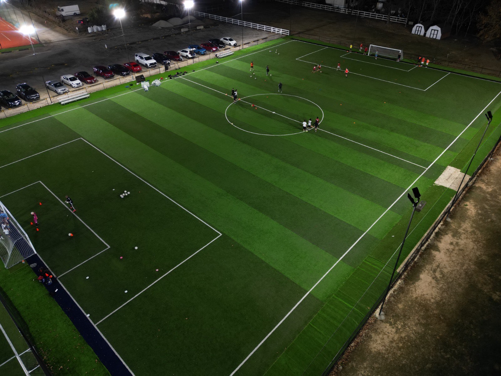Come see our new 8v8 select field. Designed to enhance performance and safety, this turf minimizes injury risks by providing uniform shock absorption and reducing torque on knees and ankles. Elevate your game while staying protected. The field measures 180ft x 120ft and Astroturf Route 60 Premium Sports turf was used along with Nike Grind 100% recycled infill made from Nike footwear. The 8v8 select field also has a concrete border, and covered home and away team seating.